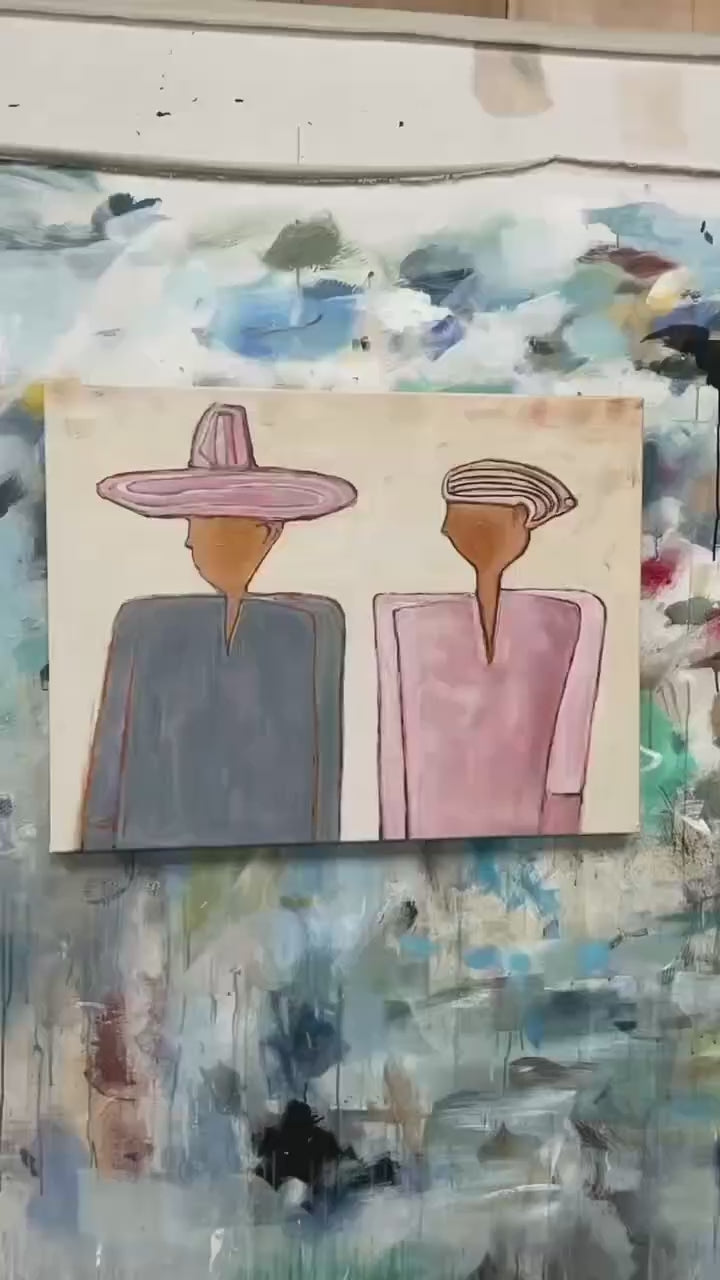 This one-of-a-kind modernist painting showcases heavy brushwork and a unique impasto technique. The artist explores human connection through abstracted forms, making it a high-value investment piece for serious art collectors. A masterful blend of soft hues and bold textures. This original expressionist portrait captures a moment of quiet reflection between two figures. With its muted pink and charcoal tones, this hand-painted canvas adds a layer of sophisticated modernism to any luxury interior.